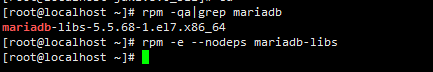 删除mariadb,命令:rpm -e --nodeps mariadb-libs
