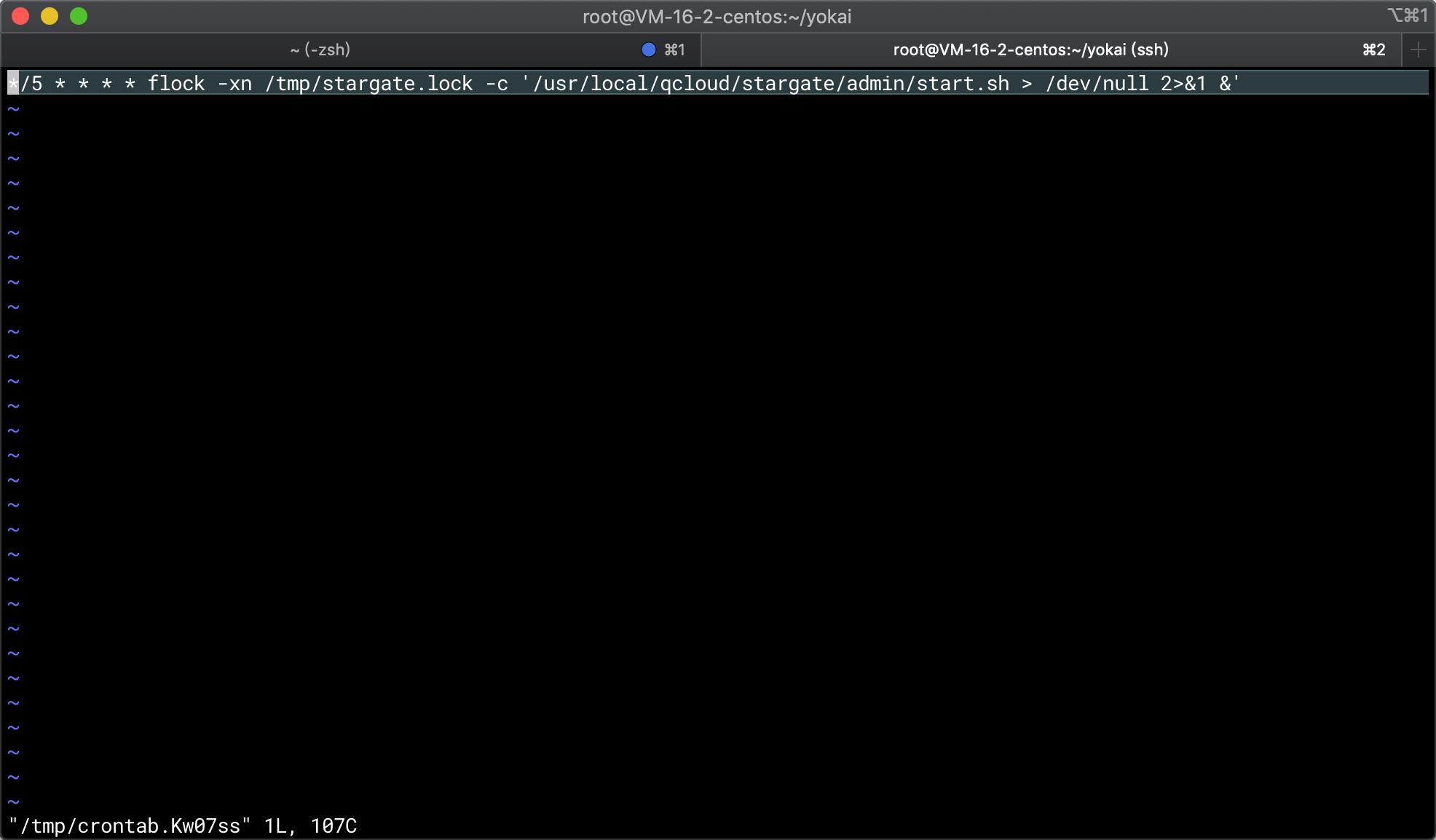 */5 * * * * flock -xn /tmp/stargate.lock -c '/usr/local/qcloud/stargate/admin/start.sh > /dev/null 2>&1 &'